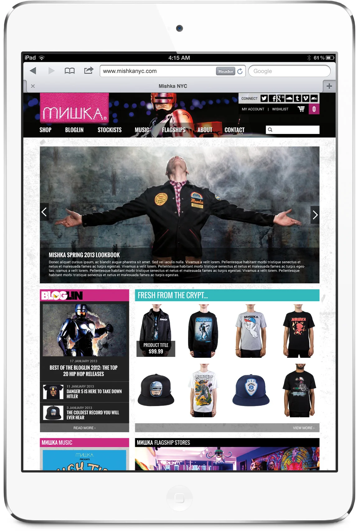Principal designer for Trade in Cool on the redesign of the Mishka NYC website/online store - from wire-framing to final design.
