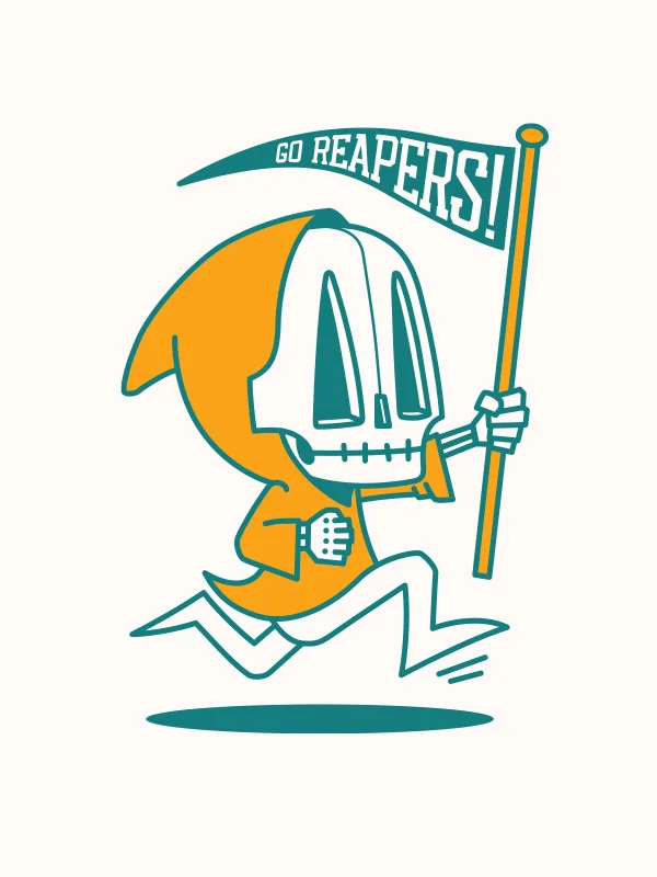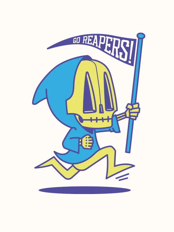 The concept came from the idea that kid reaper doesn’t have a scythe but his fave team ‘The Reapers’ flag is similar in design.