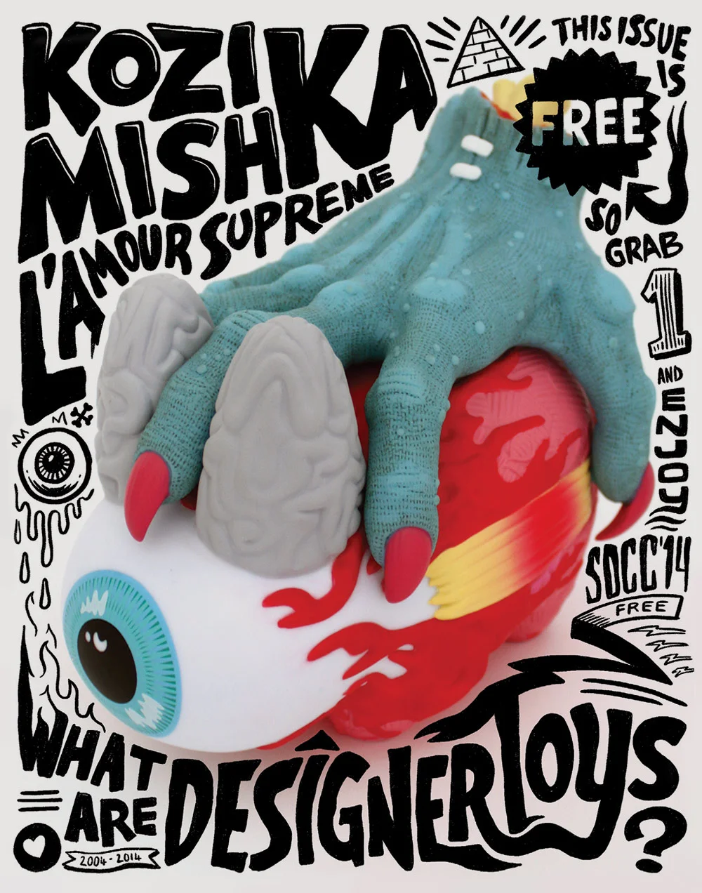 Typographic cover illustration for the San Diego Comic-Con Special Edition of Clutter Magazine - also featuring the Mishka Labbit toy produced by Kidrobot.
